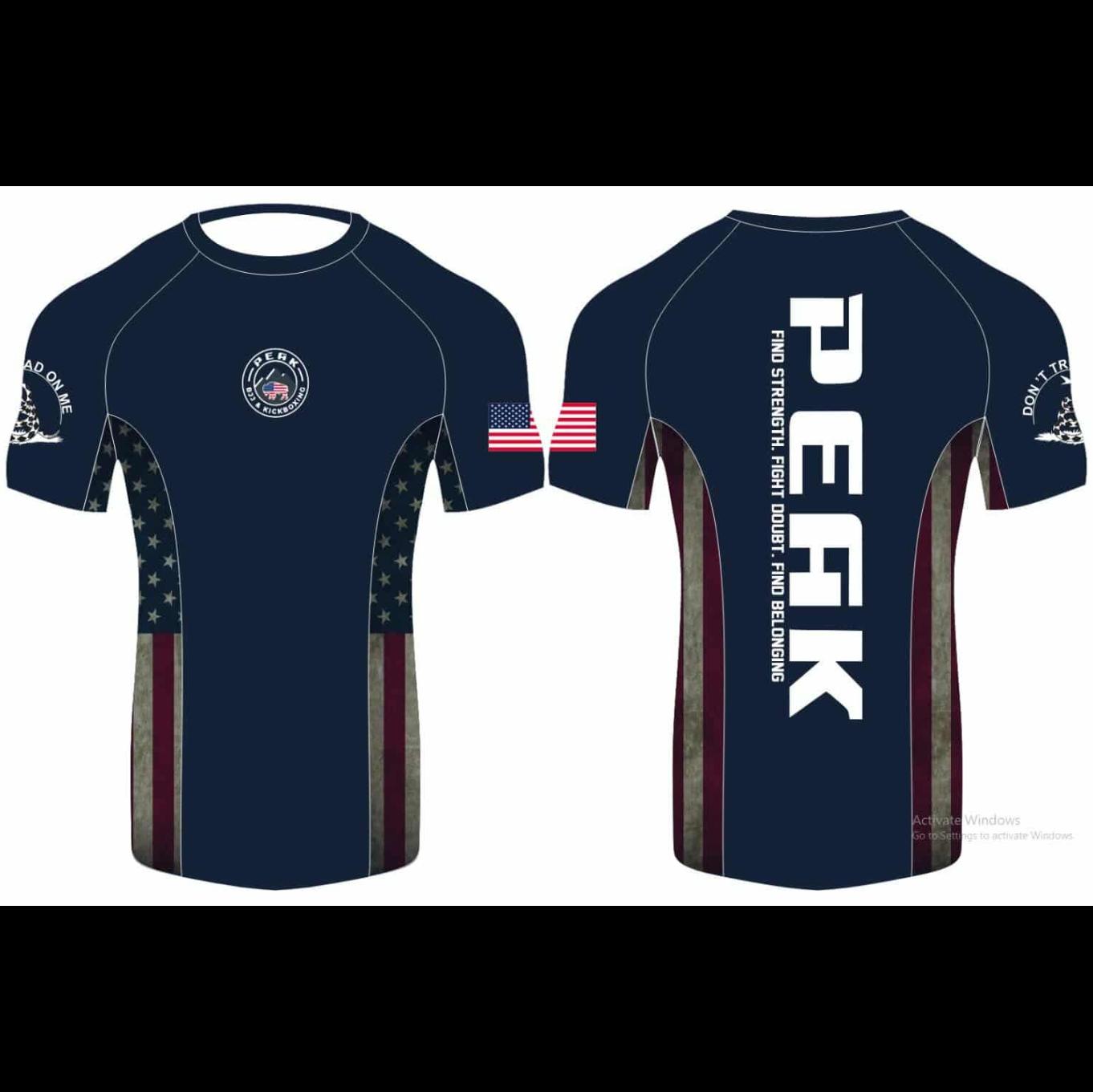 Honoring our country. The limited edition Peak USA rashguard. Made with professional quality 4-way stretch material. Have the best looking rashguard on the mats!